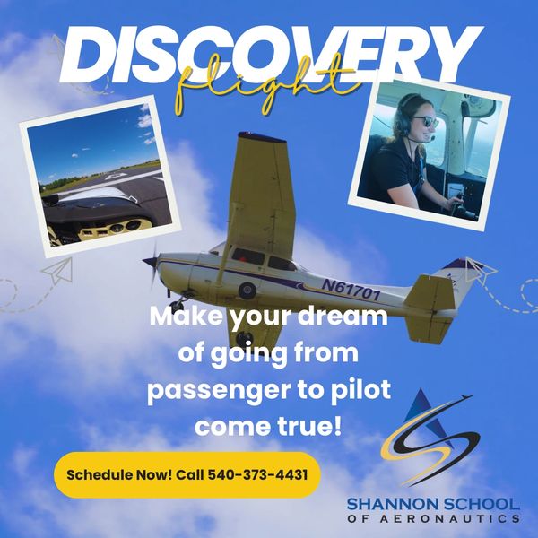 Shannon School of Aeronautics discovery flights start at $185 for 30 minutes and $275 for 1 hour. They make a great gift either for yourself or someone else! The flight is for one person and consists of a flight over the local area.